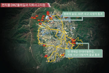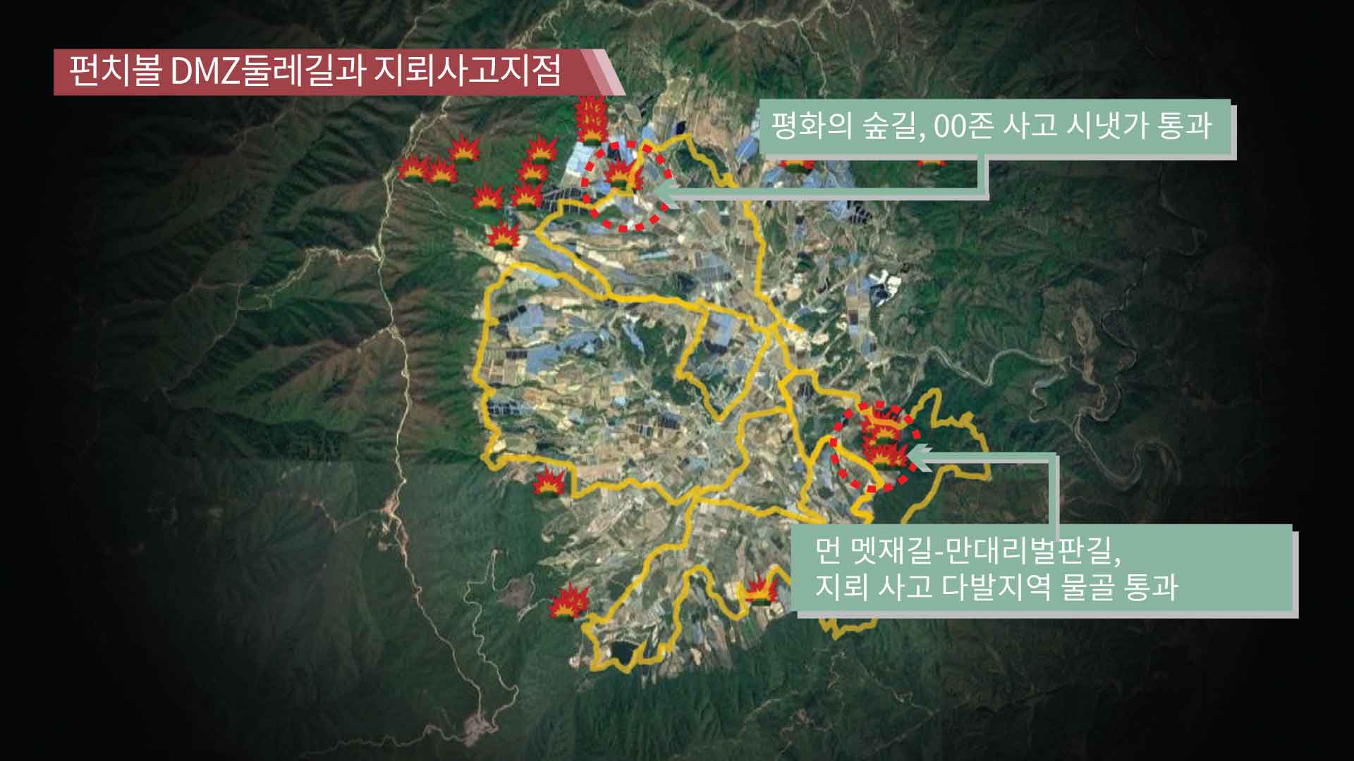 하지만 펀치볼은 민통선 지역 중에서도 예외적으로 대부분 지역이 검문 없이 출입할 수 있습니다. 둘레길과 자전거 도로가 생기면서 펀치볼의 아름다운 풍광을 감상하려는 관광객이 계속 늘어나고 있고, 농사를 돕는 외국인 근로자도 있습니다. 올해 지뢰 사고를 당한 2명도 해안면 주민이 아닌 외지인들이었죠. 군의 논리는 앞으로도 관광객과 해안면 사람들을 지뢰 위험에 노출하겠다는 뜻이나 마찬가지입니다.